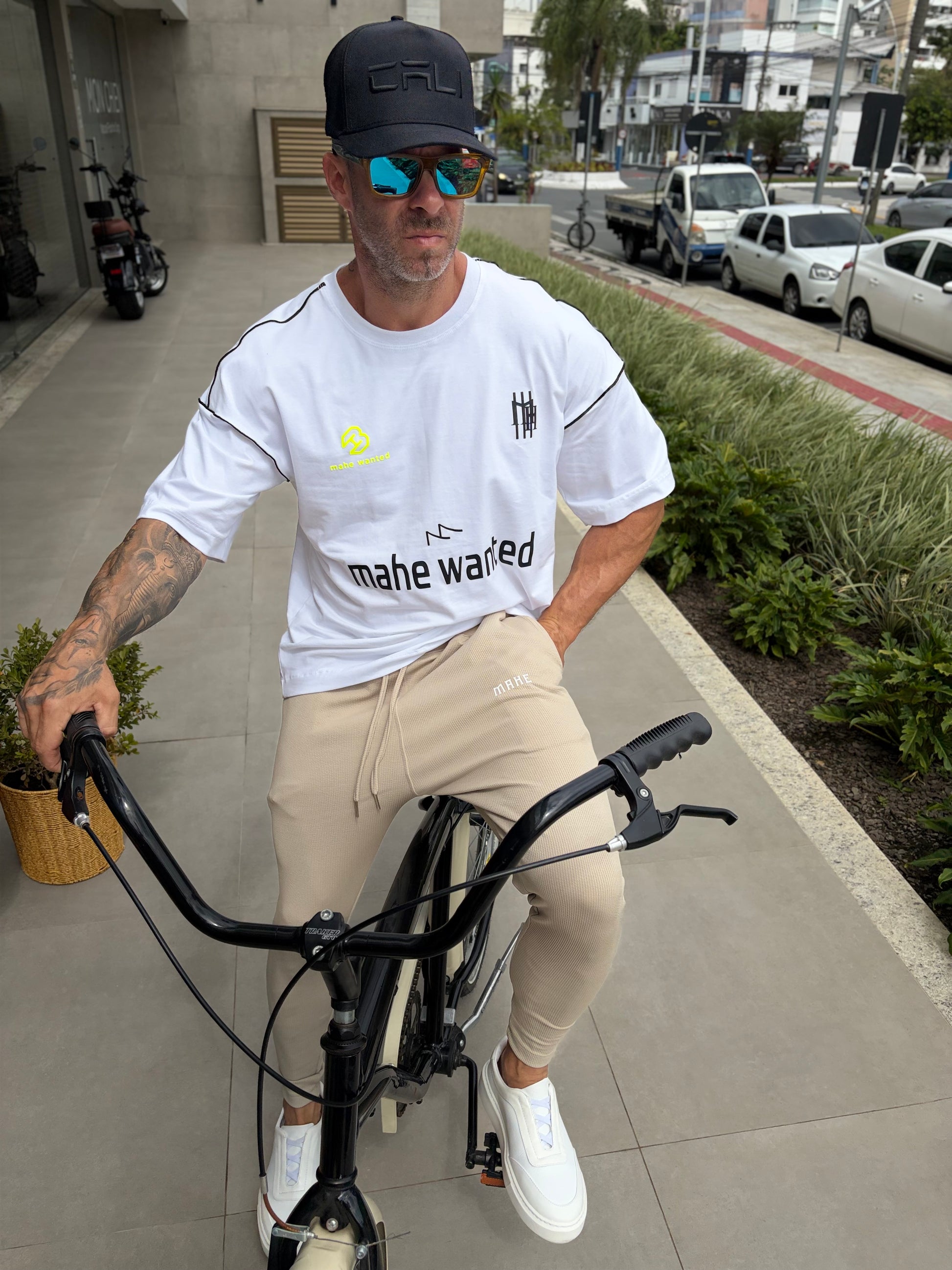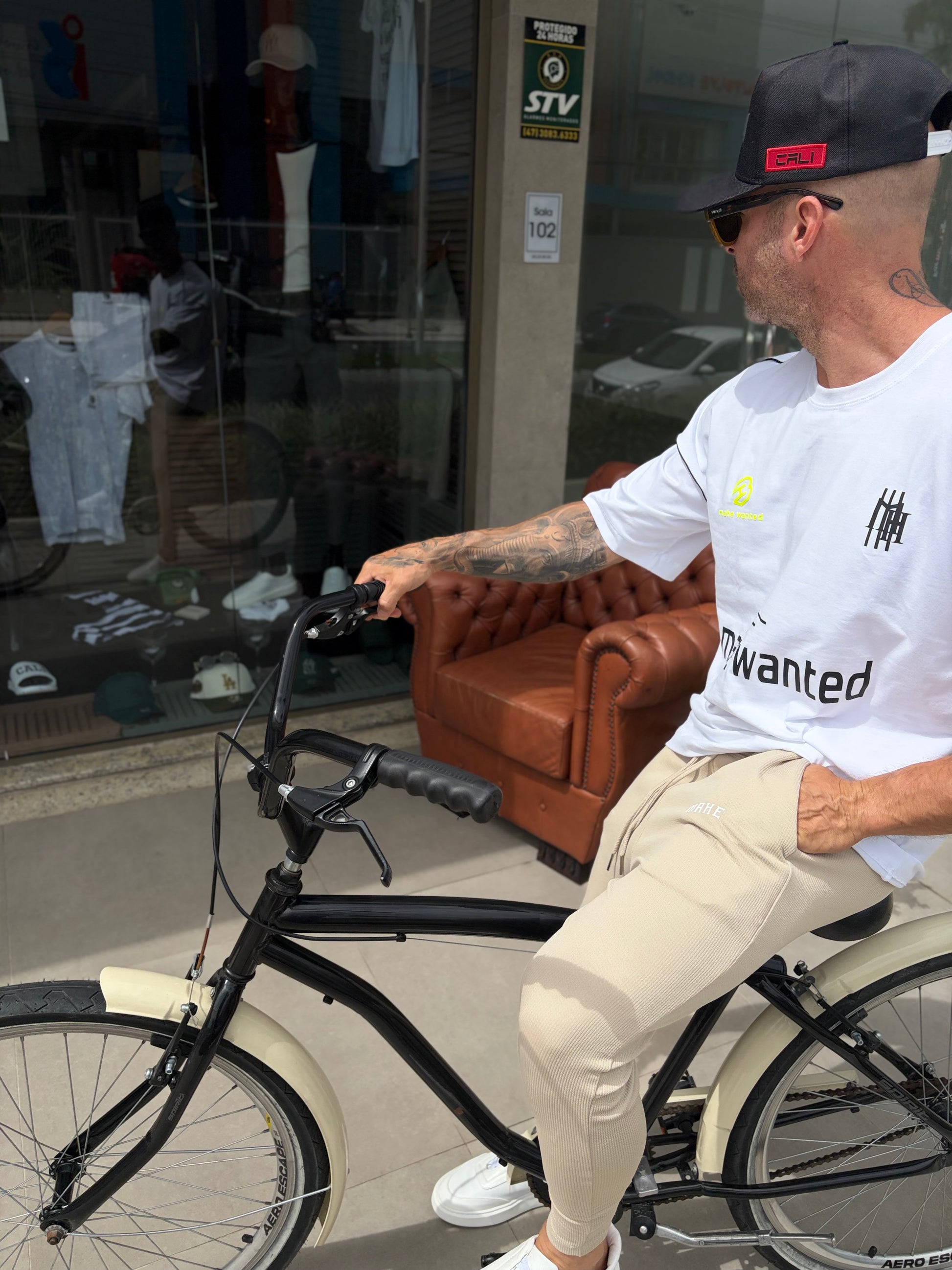 Modelo tem 1,72 altura 86kg, na foto veste M.