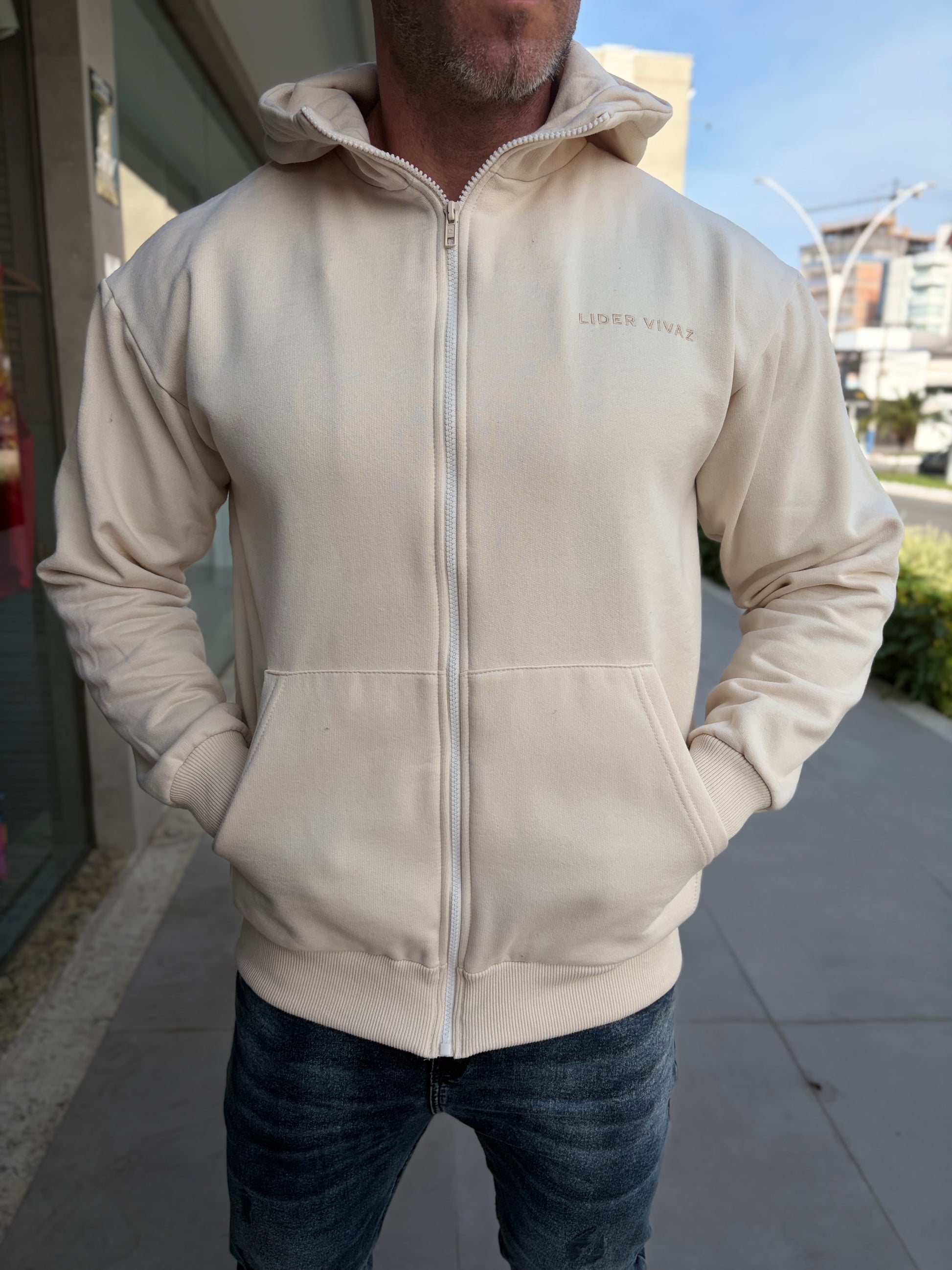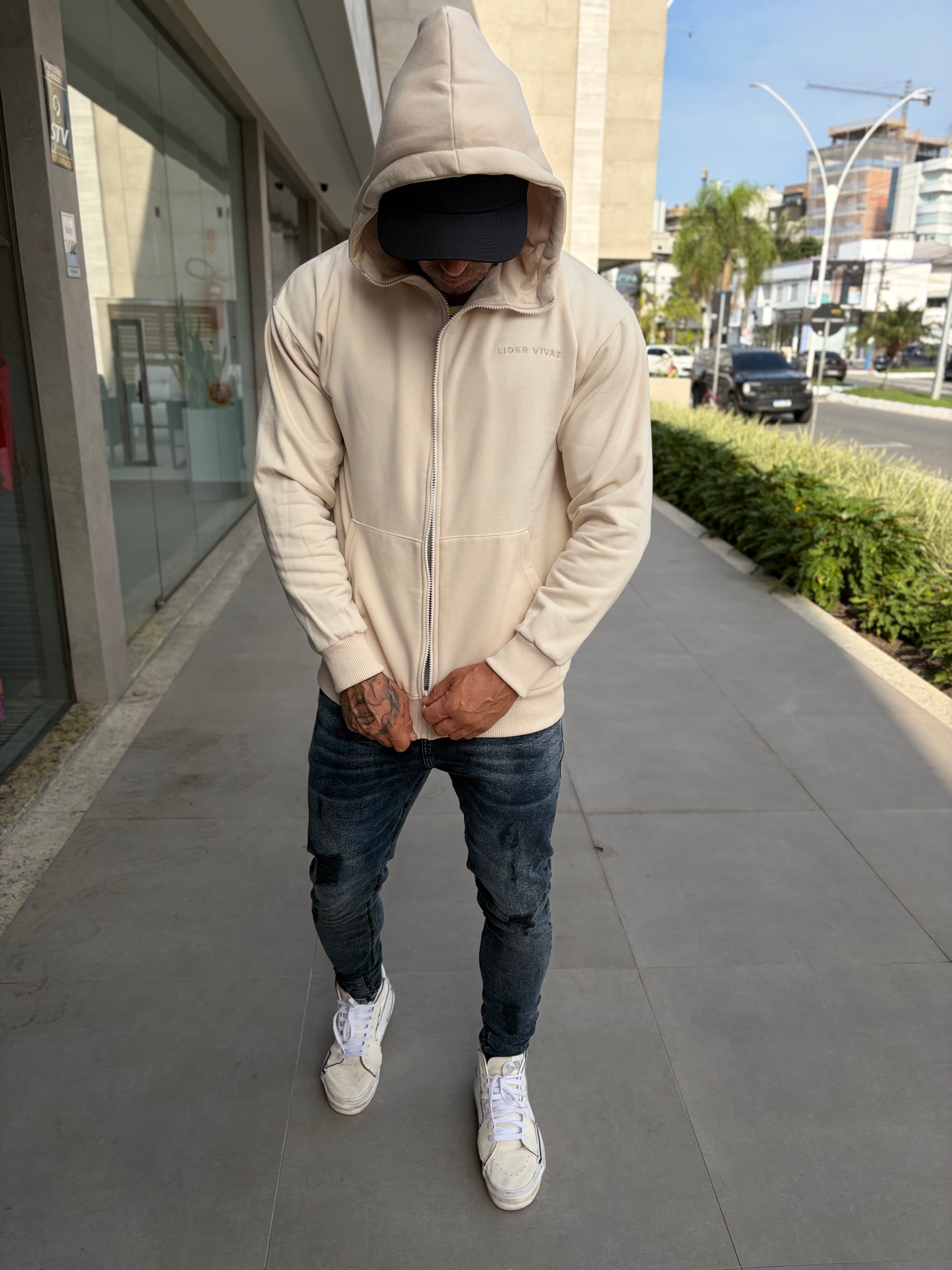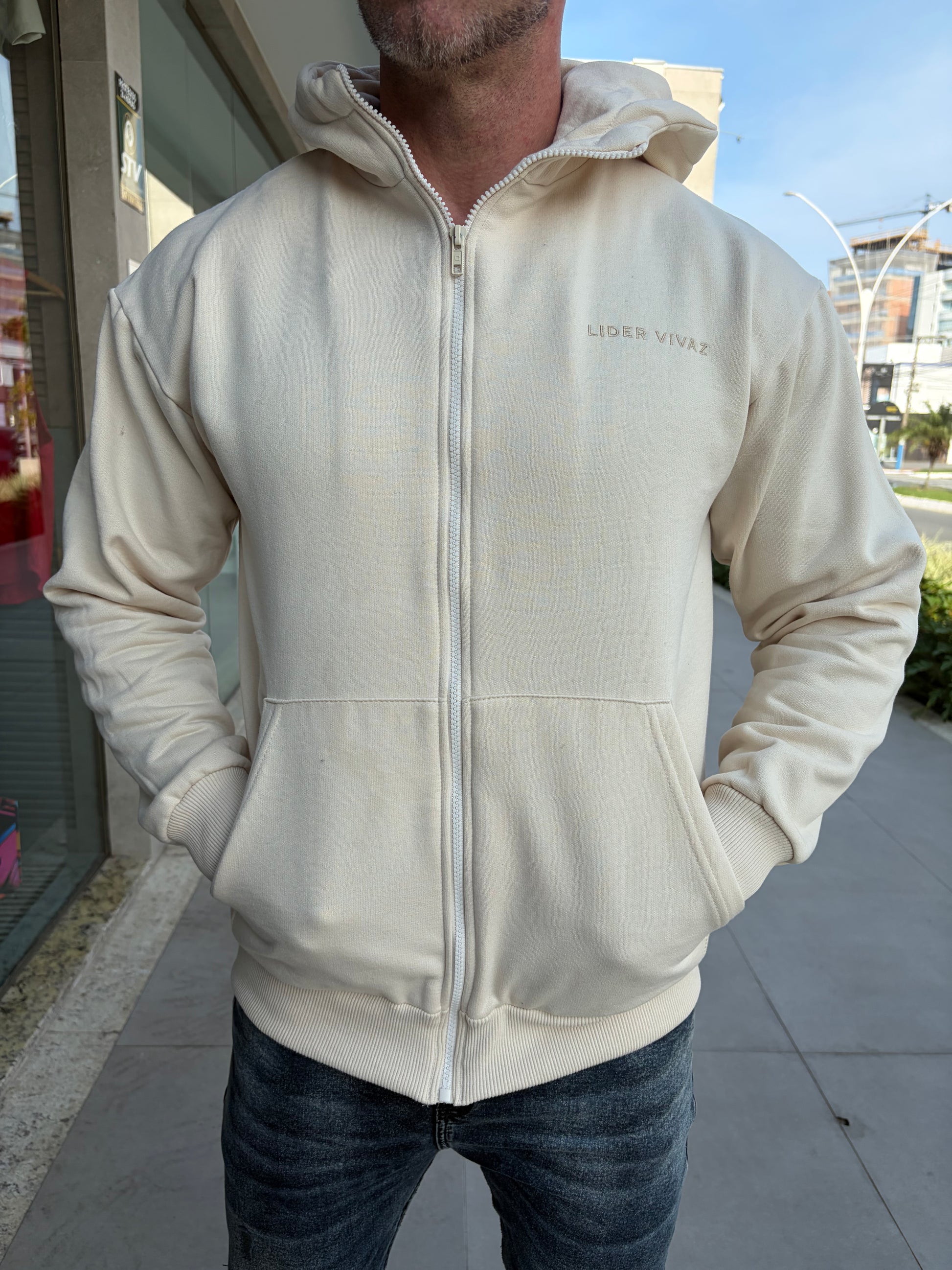 Moletom Canguru LV Off é uma peça minimalista , com a clássica cor Off White , peça feita para representar o mais alto padrão. Sobre o tecido ele é maleável e confortável com ótimo caimento sobre o corpo.