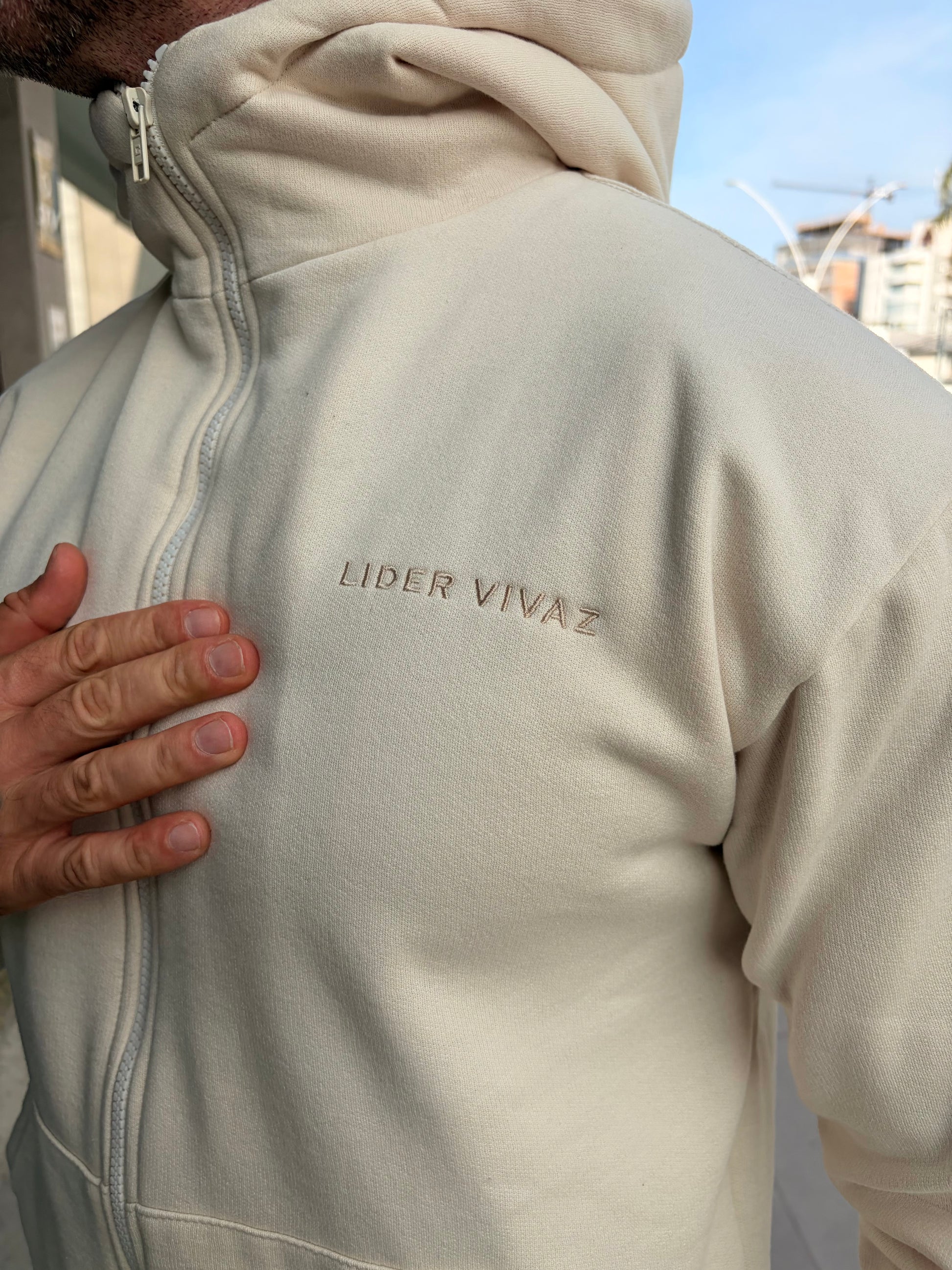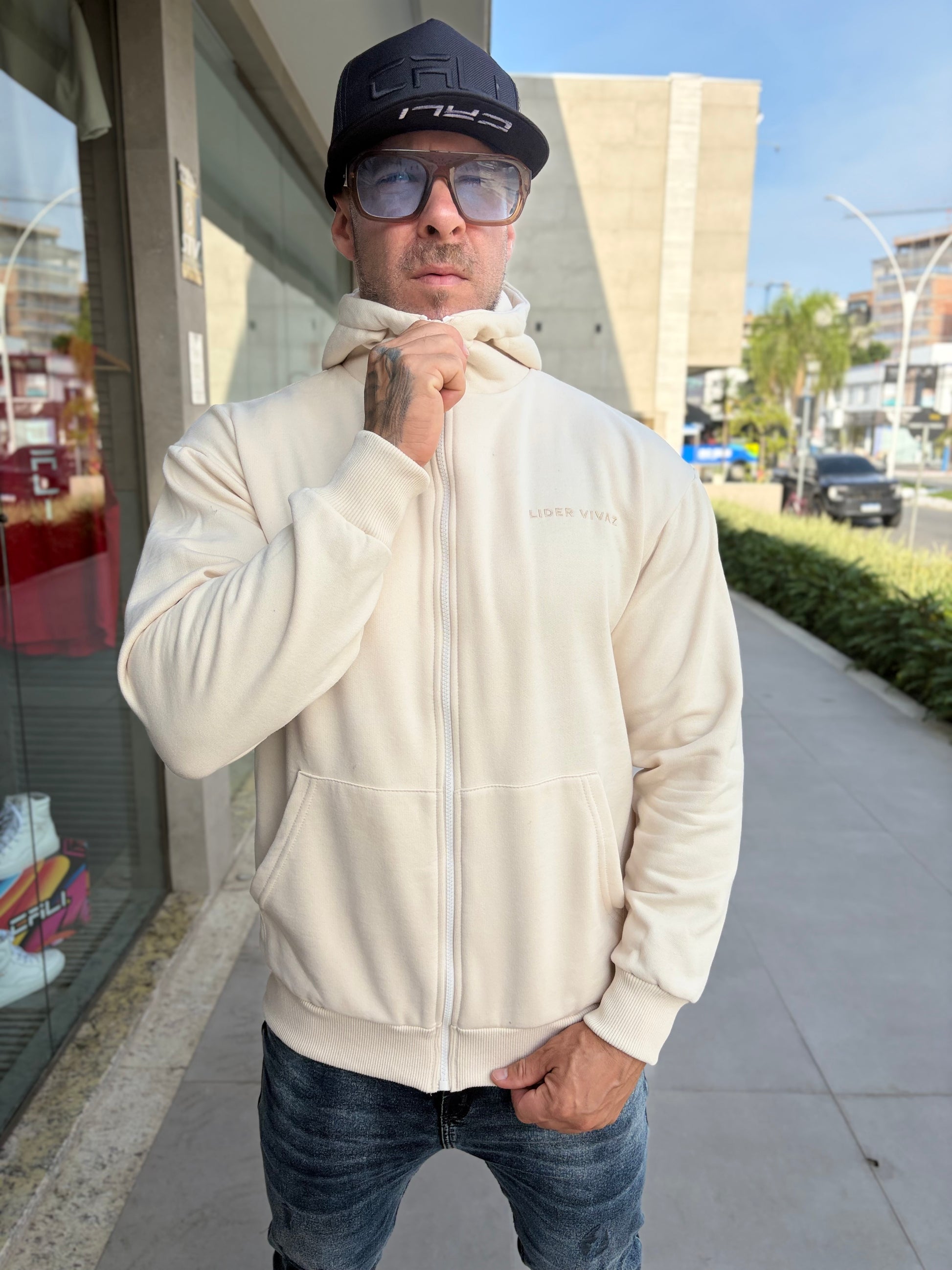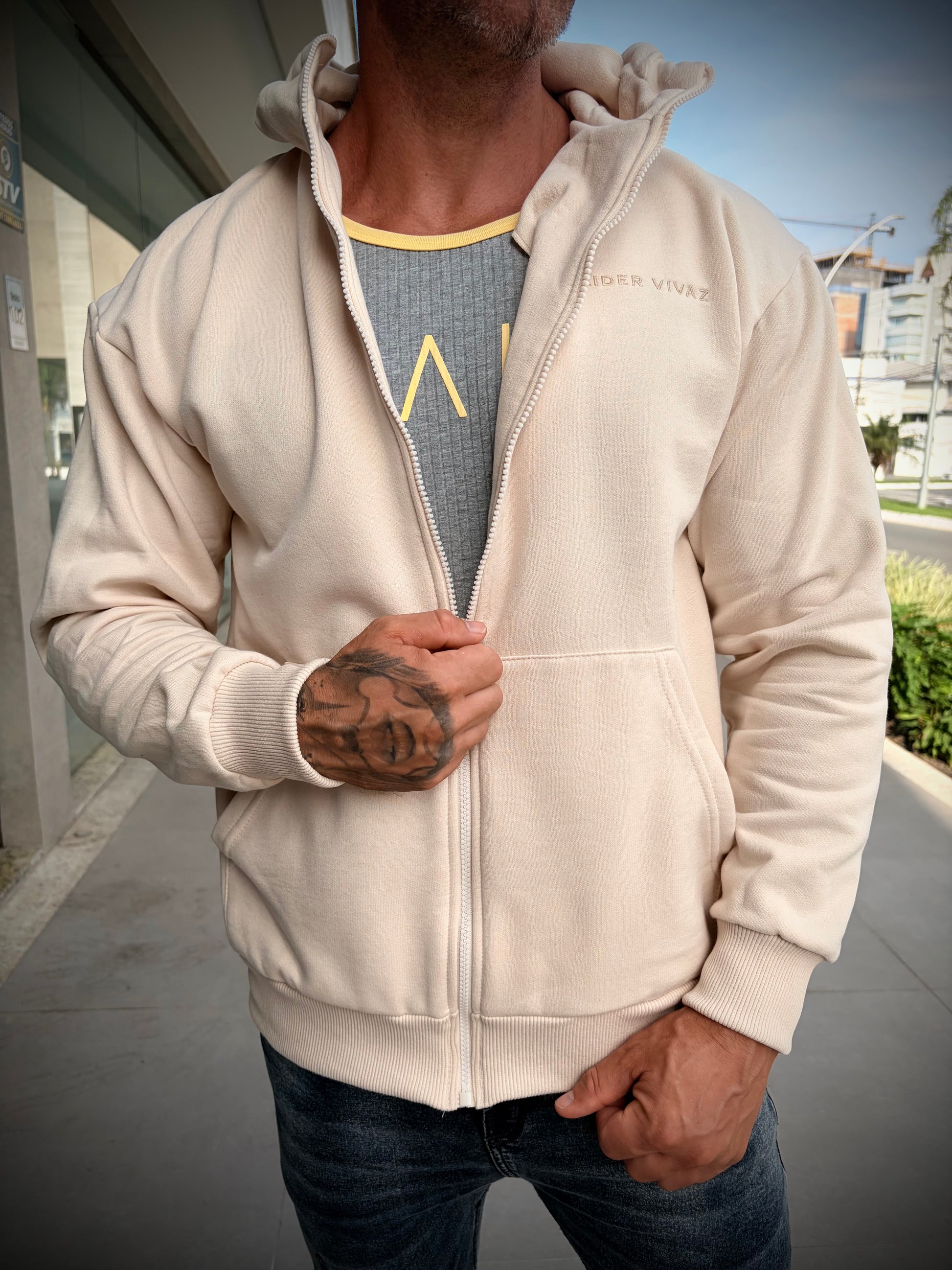 Moletom Canguru LV Off é uma peça minimalista , com a clássica cor Off White , peça feita para representar o mais alto padrão. Sobre o tecido ele é maleável e confortável com ótimo caimento sobre o corpo.