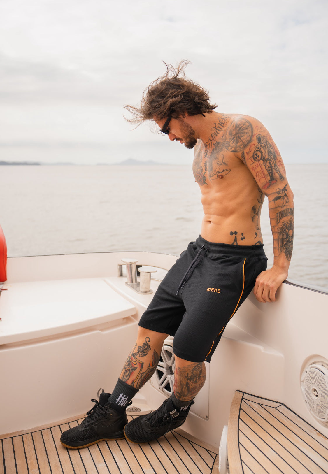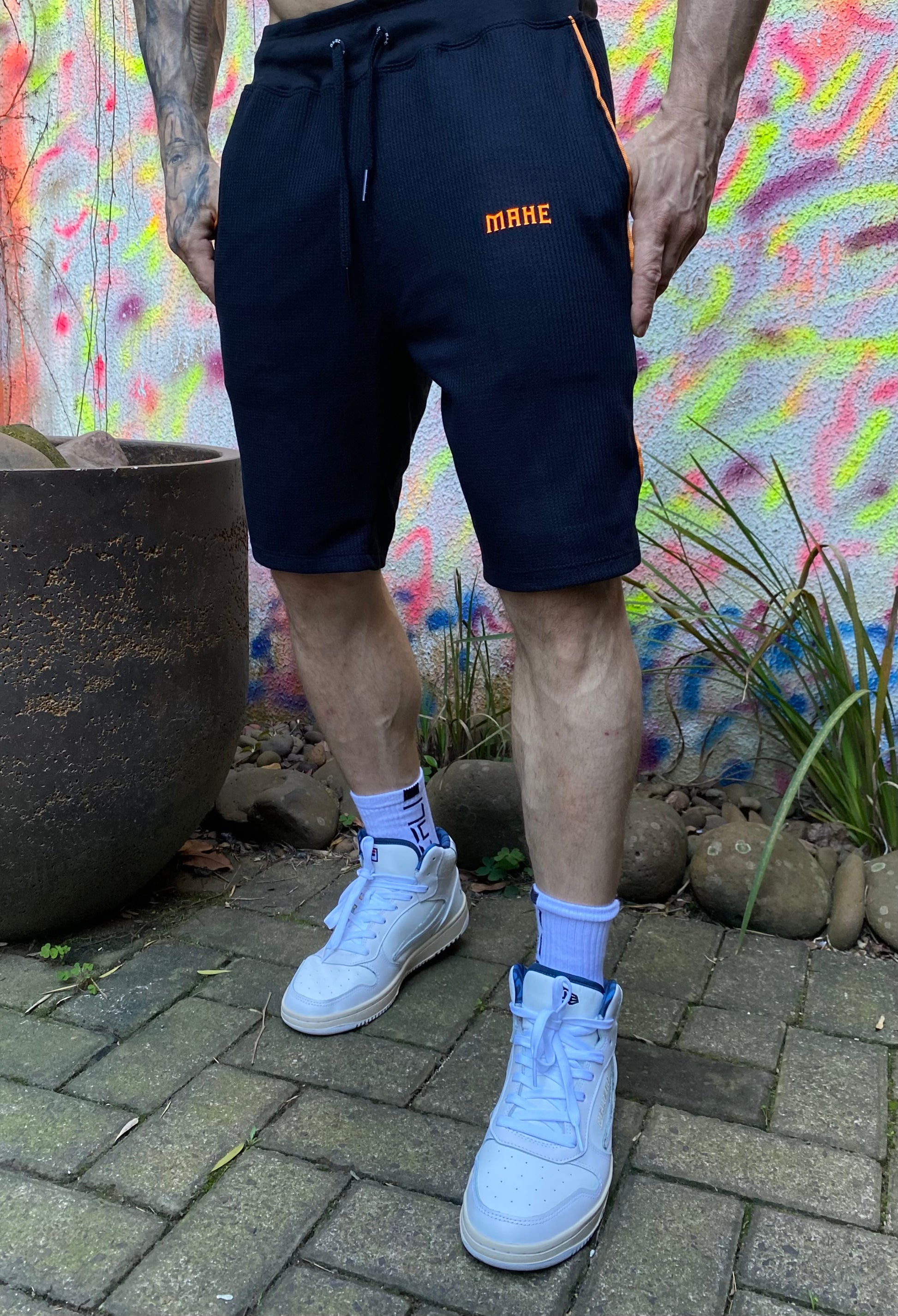 Bermuda Mahe Preta lista lateral Laranja, logo laranja.