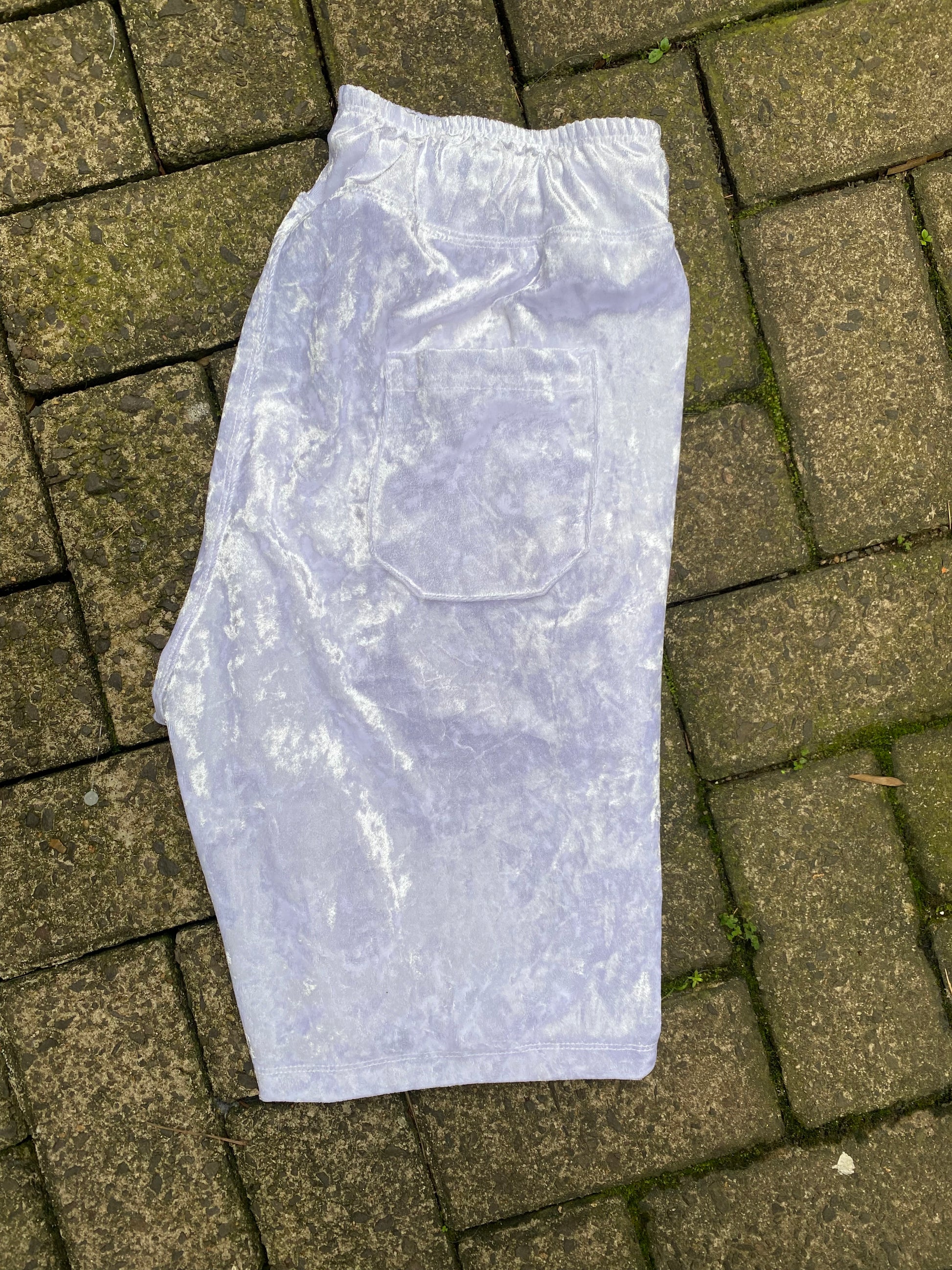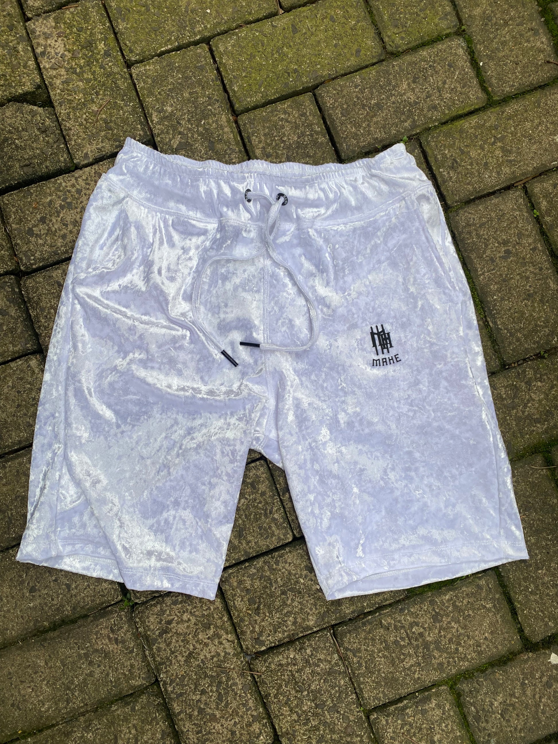 A Bermuda Mahe Branca Cebre ressalta distinção em veludo de brilho elegante, impondo presença premium e elegância refinada.