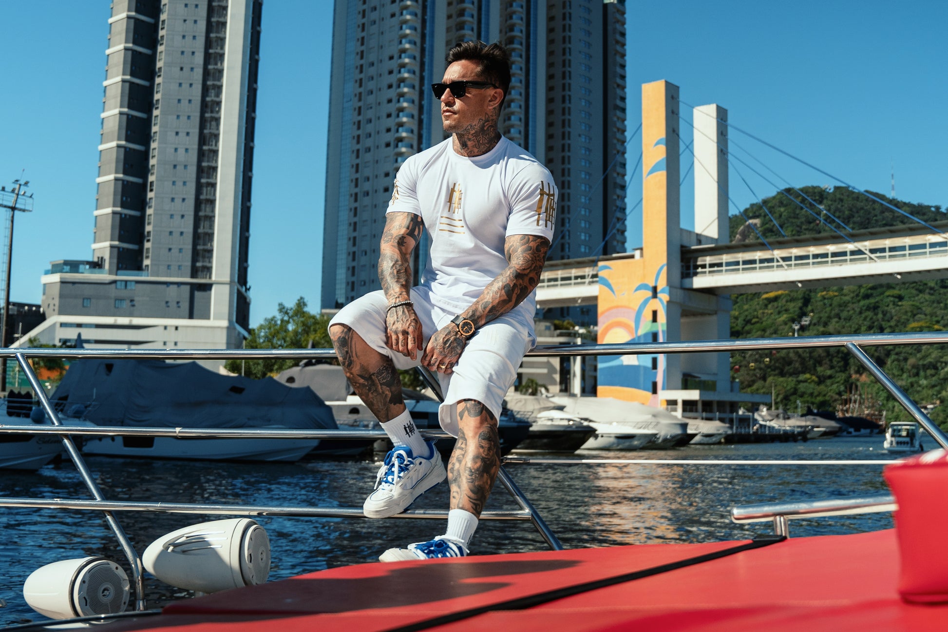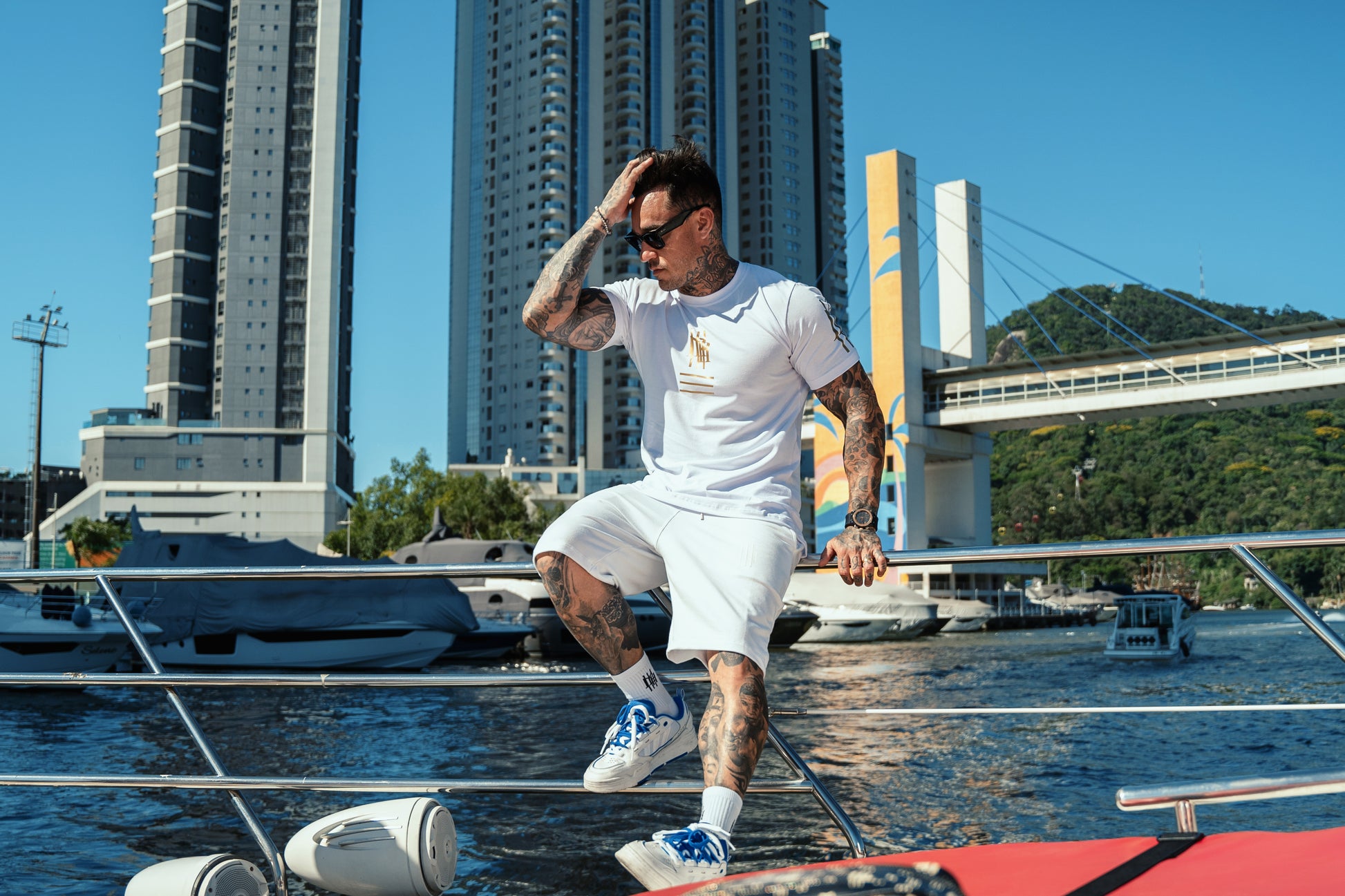 Modelo tem 1,72 altura 84kg, na foto veste M