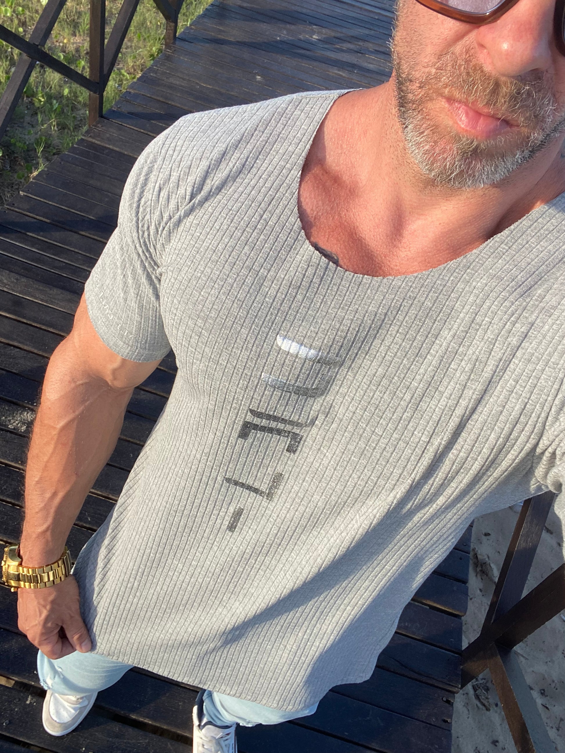 Modelo tem 1,72 altura 90kg, na foto veste G