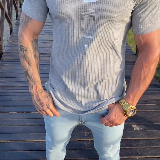 - Camiseta canelada, com corte a fio, tecido espessura media, com elastano. Barra reta.