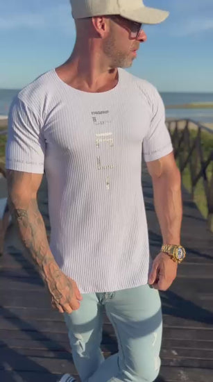 - Camiseta canelada, com corte a fio, tecido espessura media, com elastano. Barra reta.