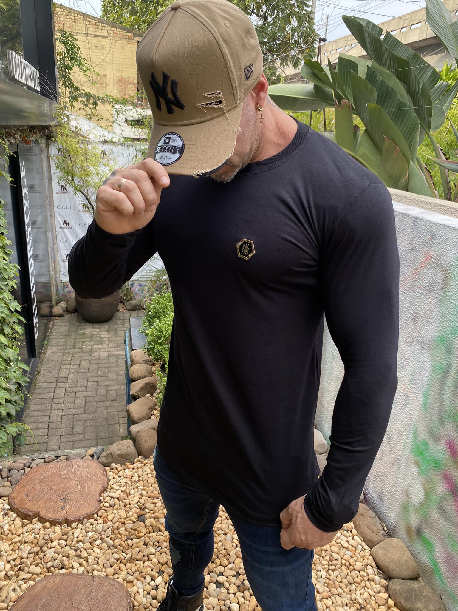 Modelo tem 1,72 altura 84kg, na foto veste M.