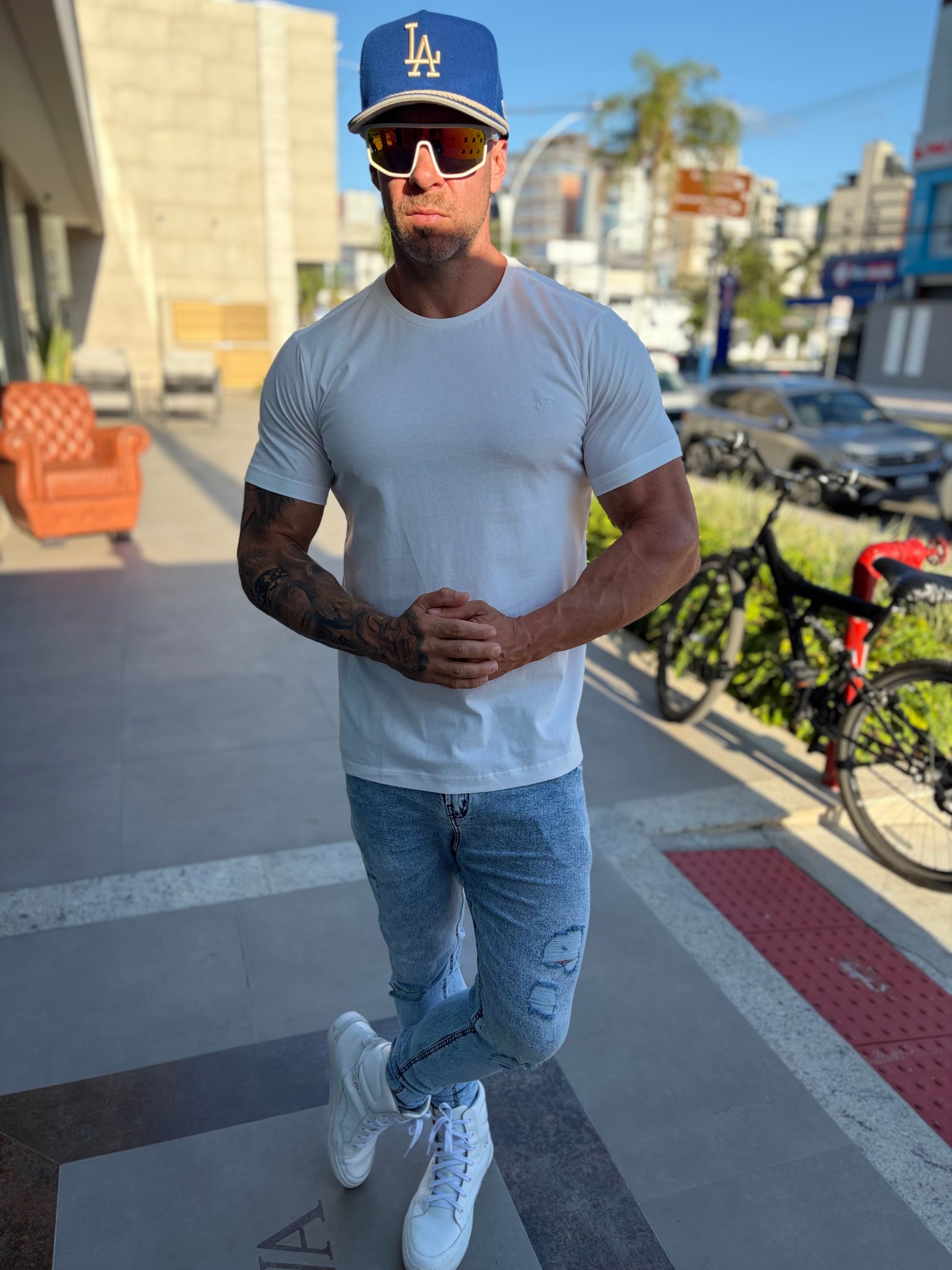Modelo tem 1,72 altura 86kg, na foto veste M.