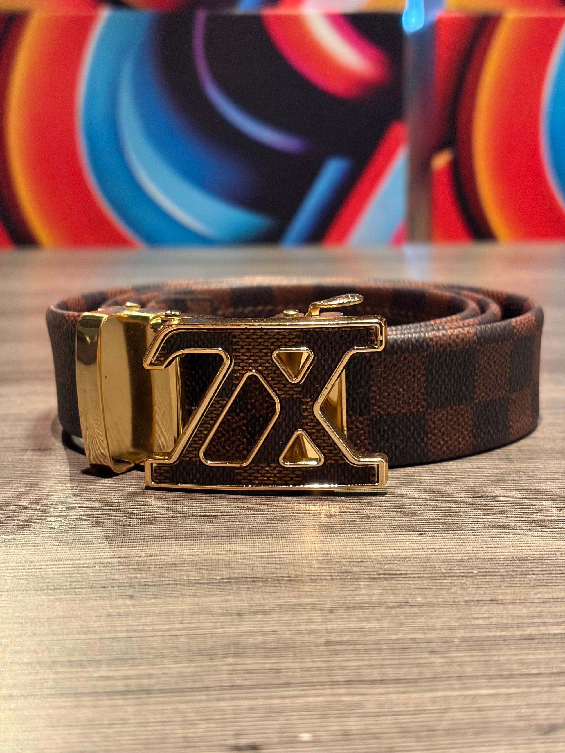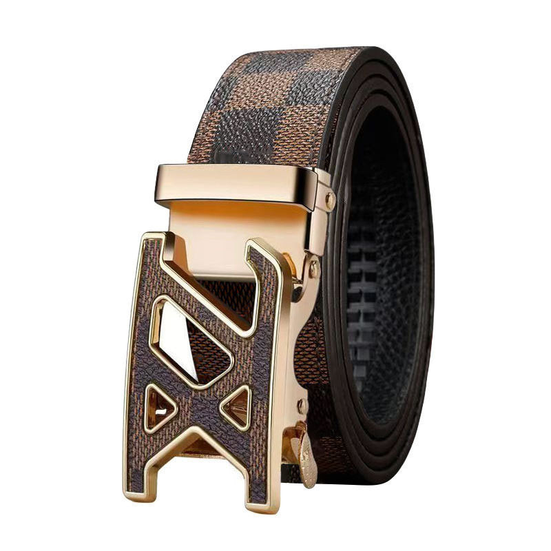 Cinto Casual de Negócios Masculino Fivela Gold.