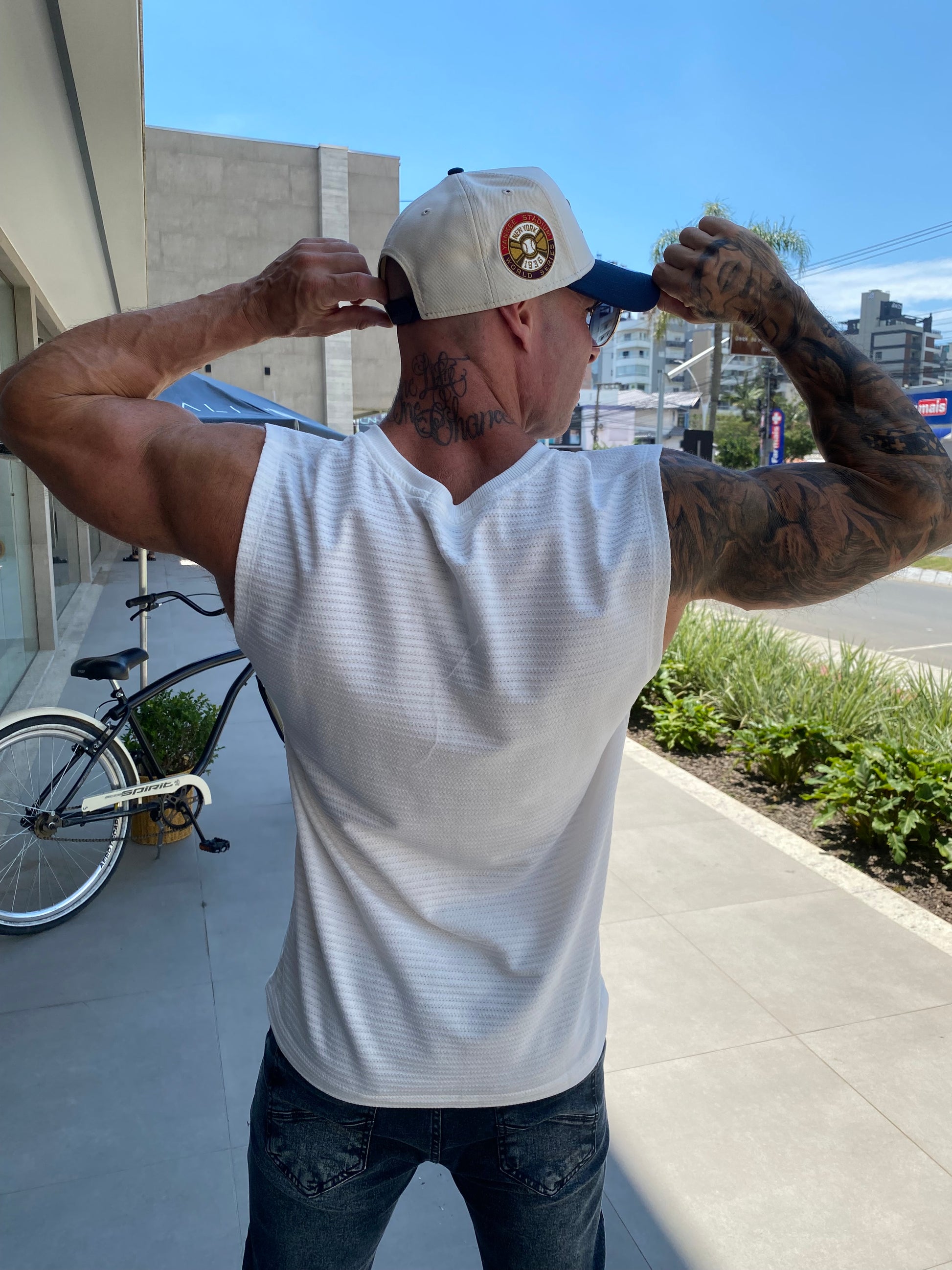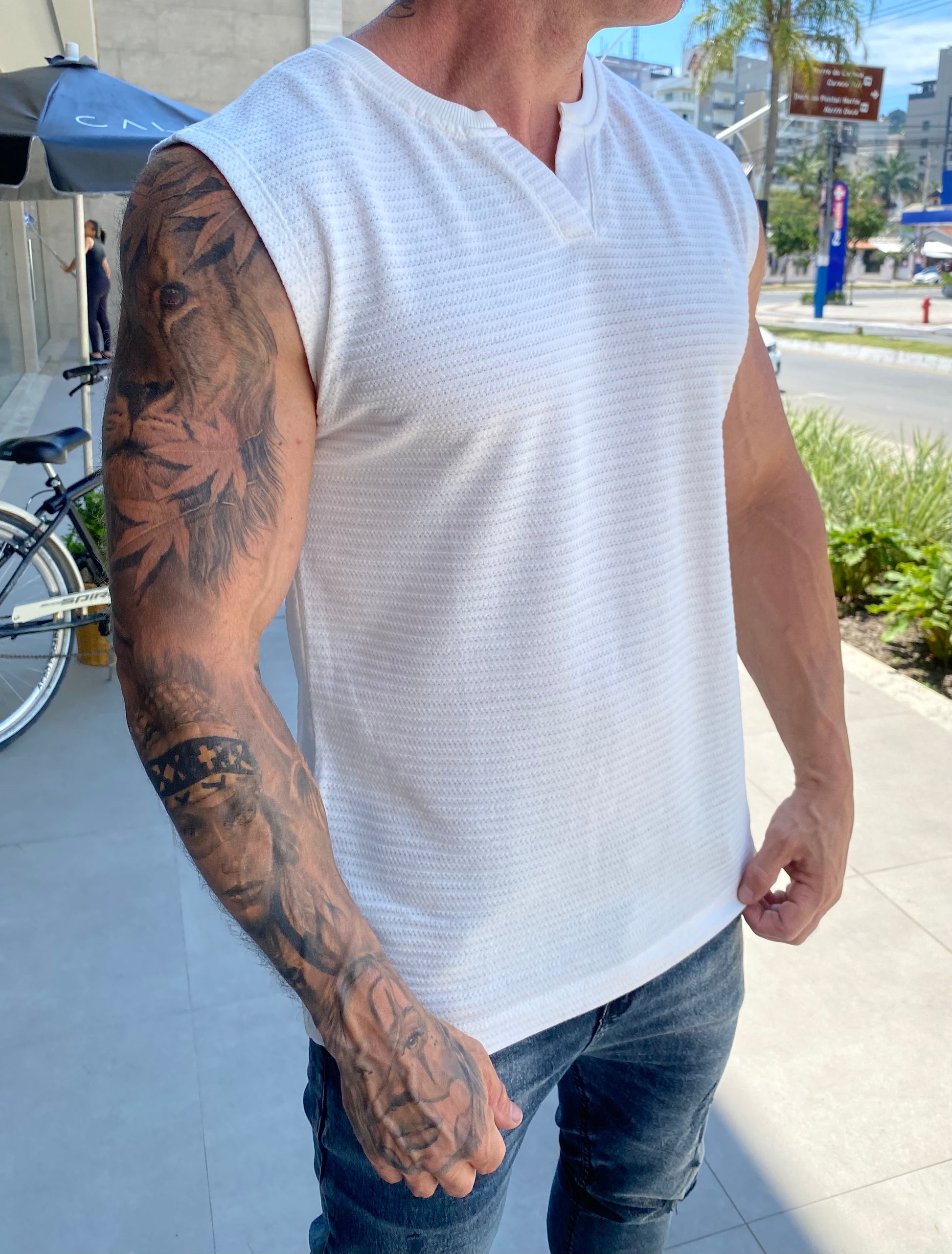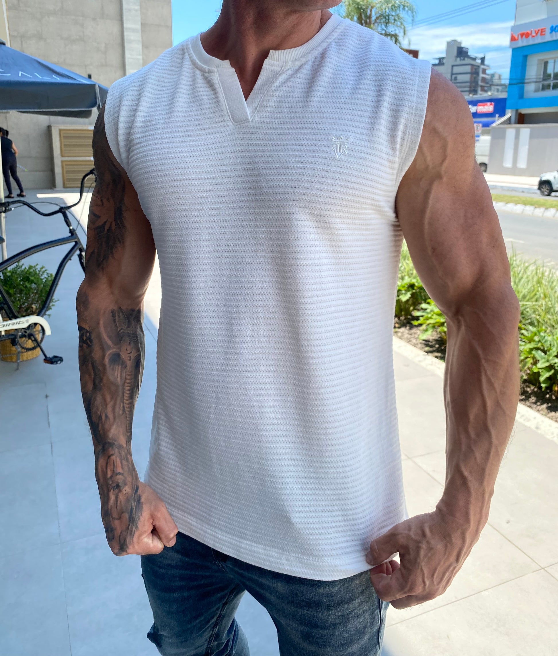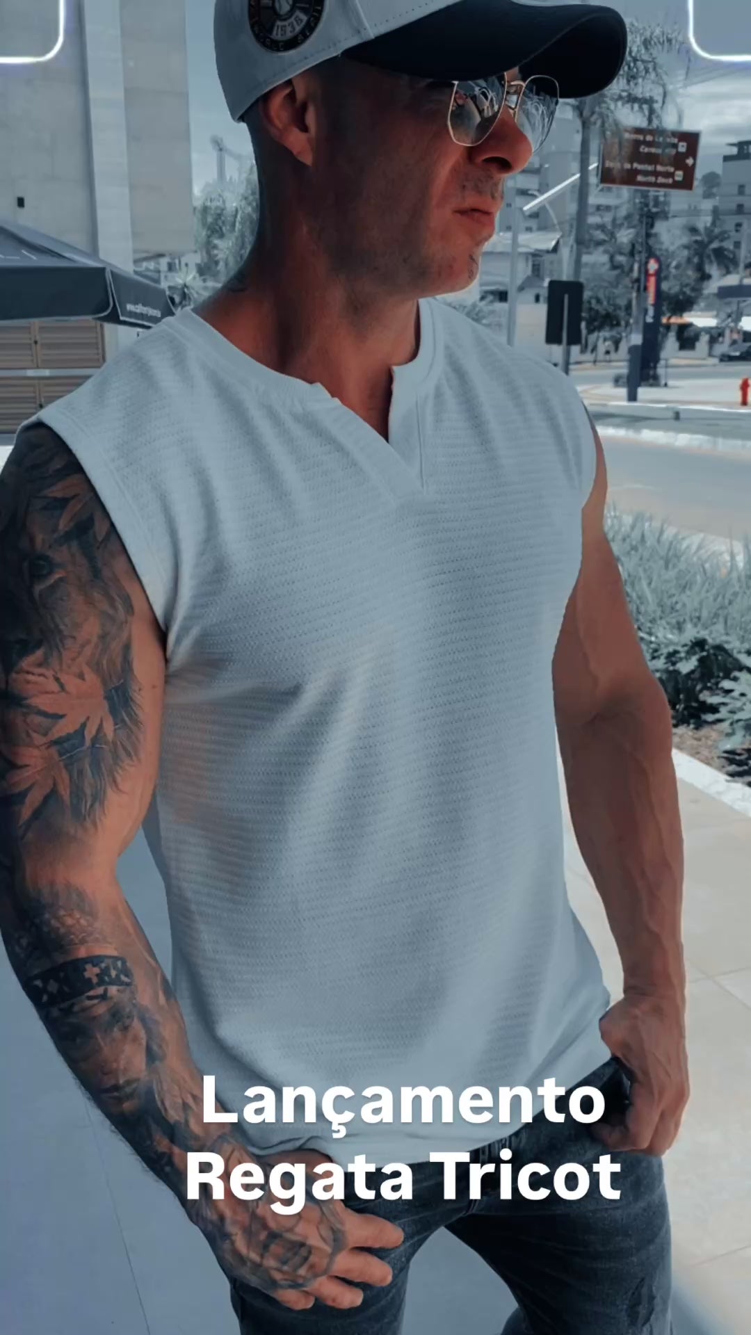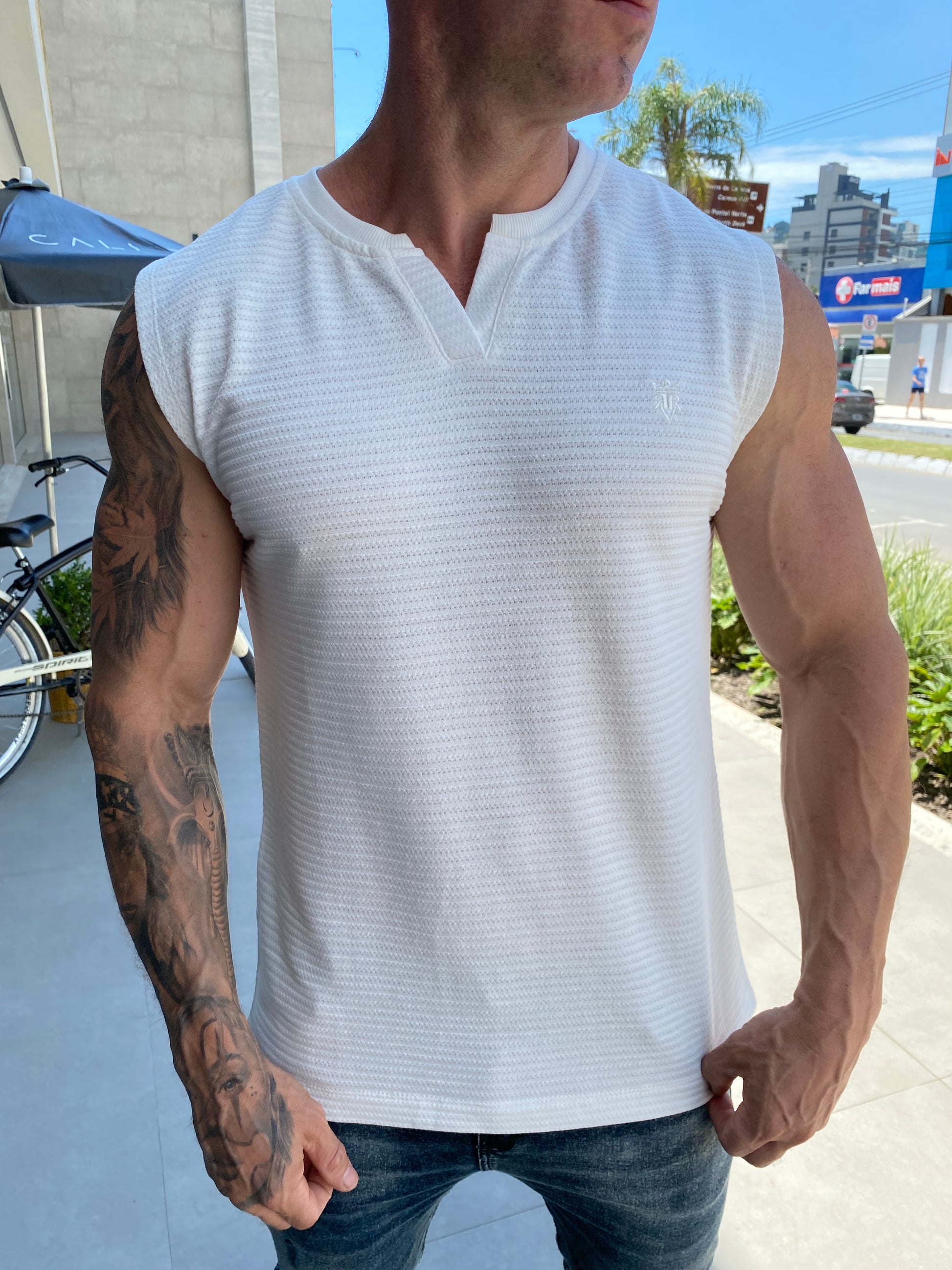 Modelo tem 1,72 altura 85kg, na foto veste M.