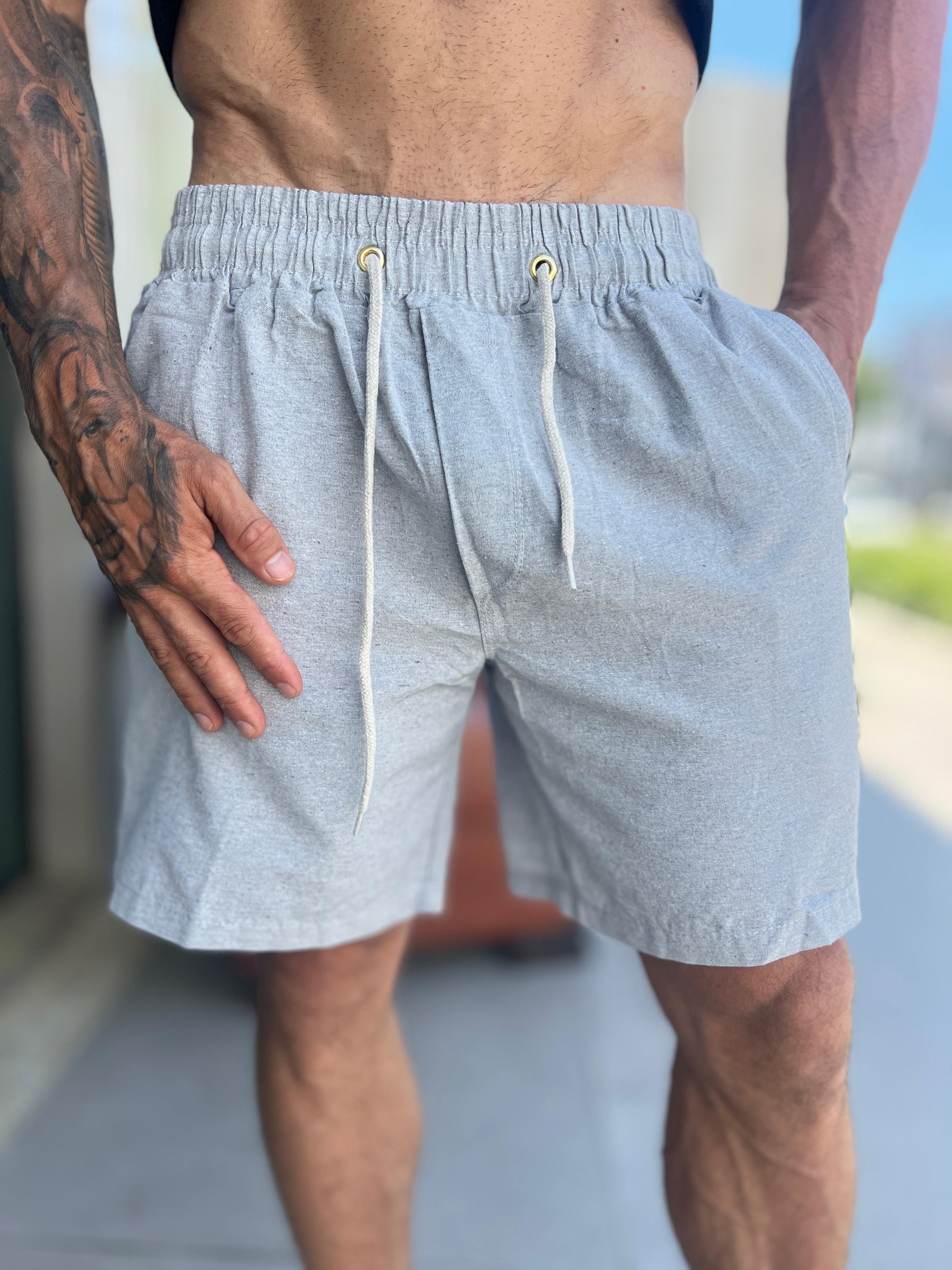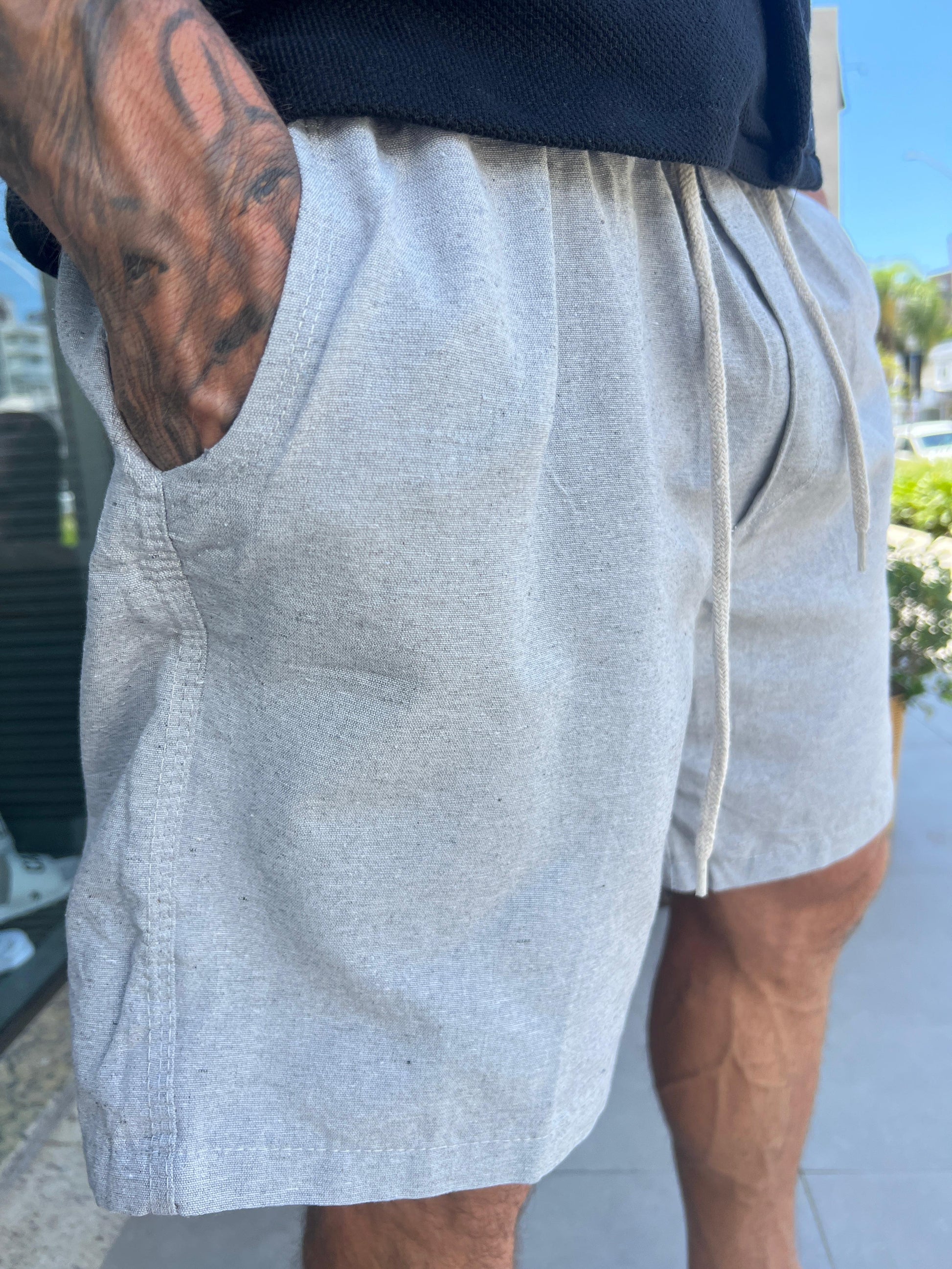 Short Mauricinho Linho Cinza Claro